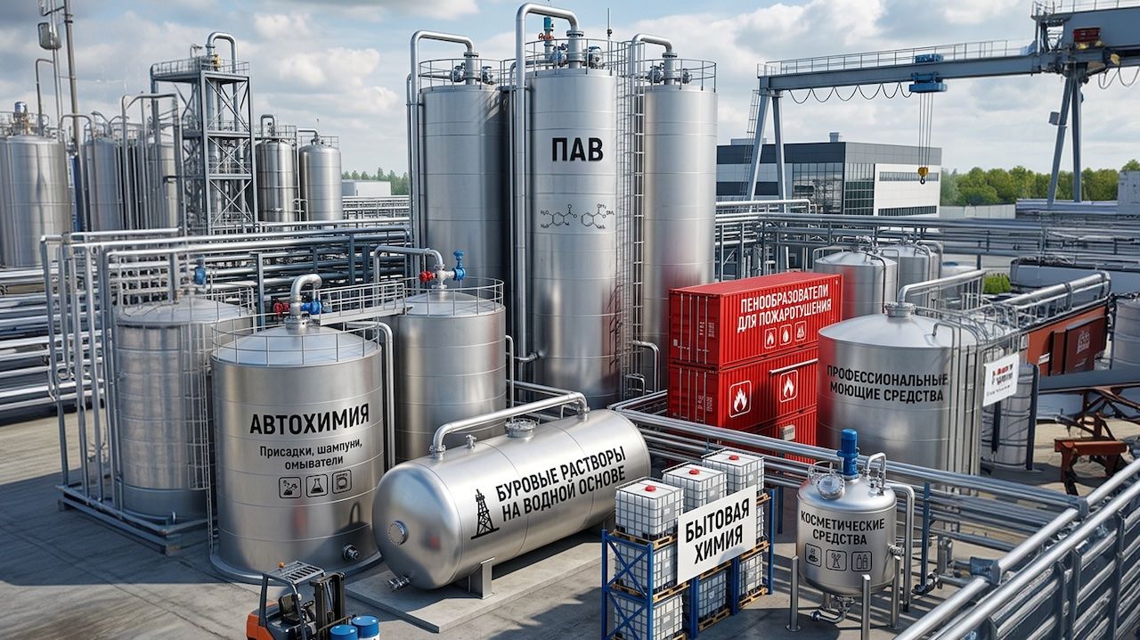 Автохимия, Буровые растворы на водной основе, Бытовая химия, Косметические средства, ПАВ общего назначения, Пенообразователи для пожаротушения, Профессиональные моющие средства